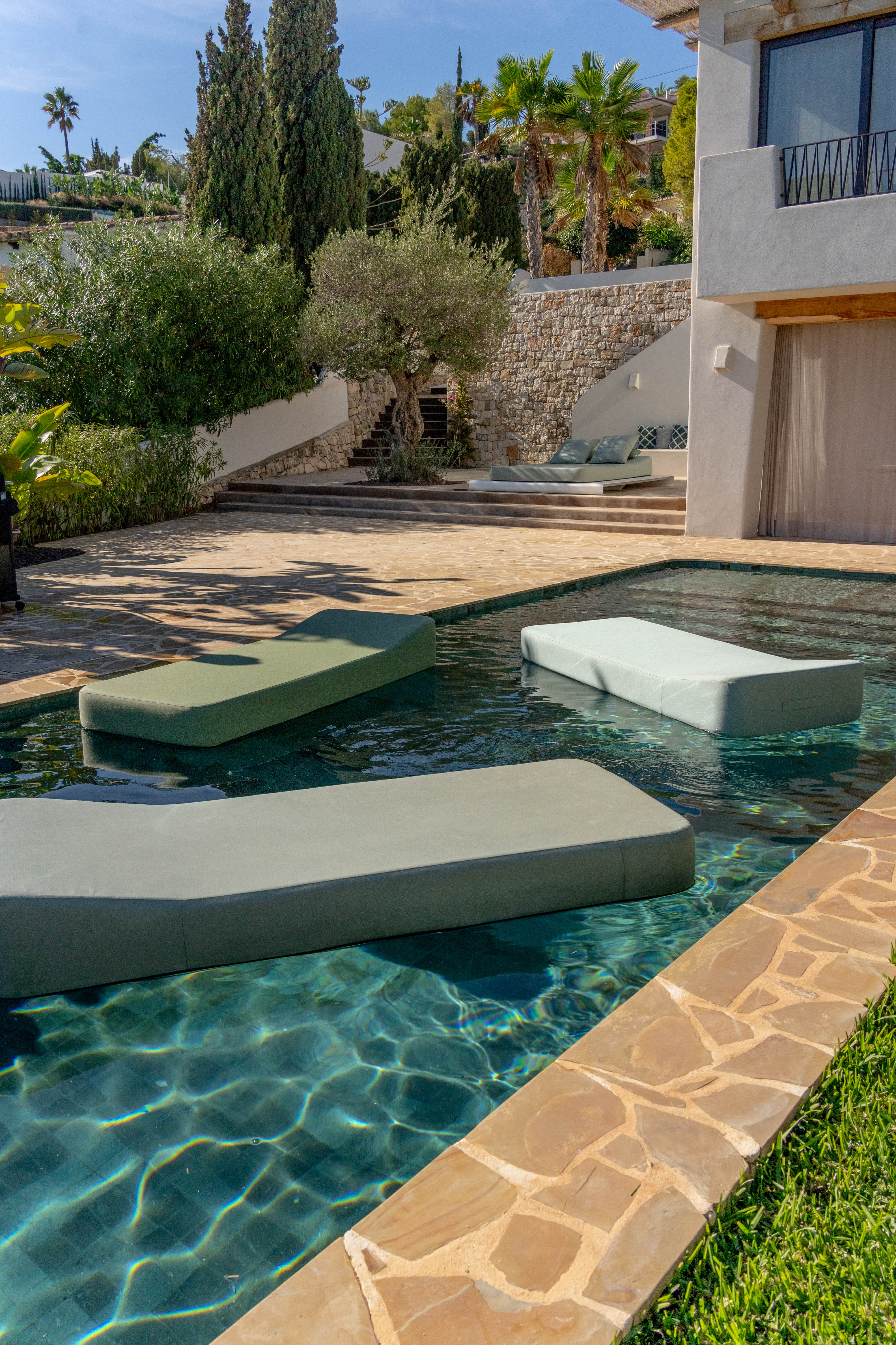 Floatiq offers a diverse range of four products: non-inflatable, water-resistant floating loungers, a daybed to transform your lounger into outdoor furniture, and square and rectangular cushions for mixing and matching.