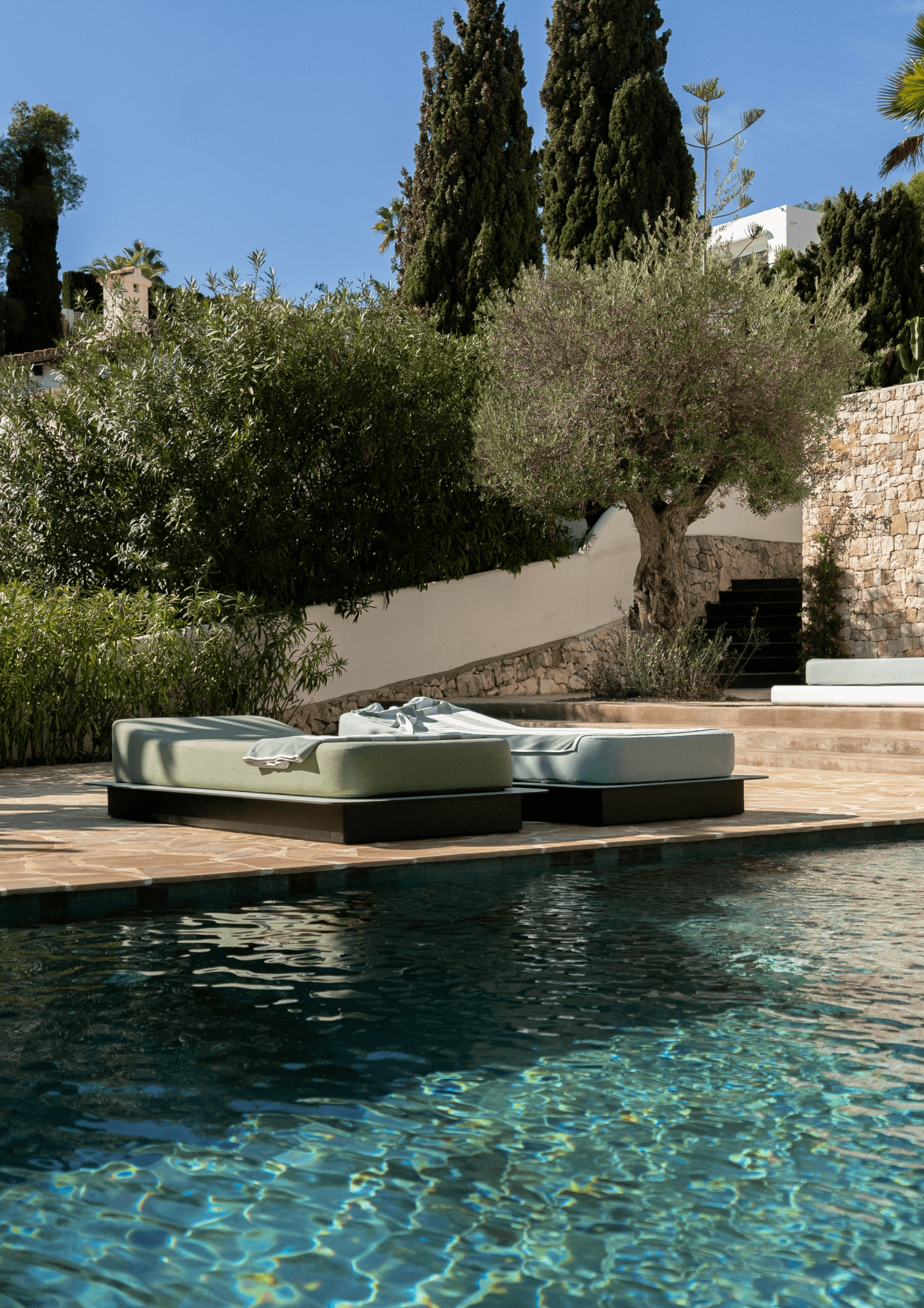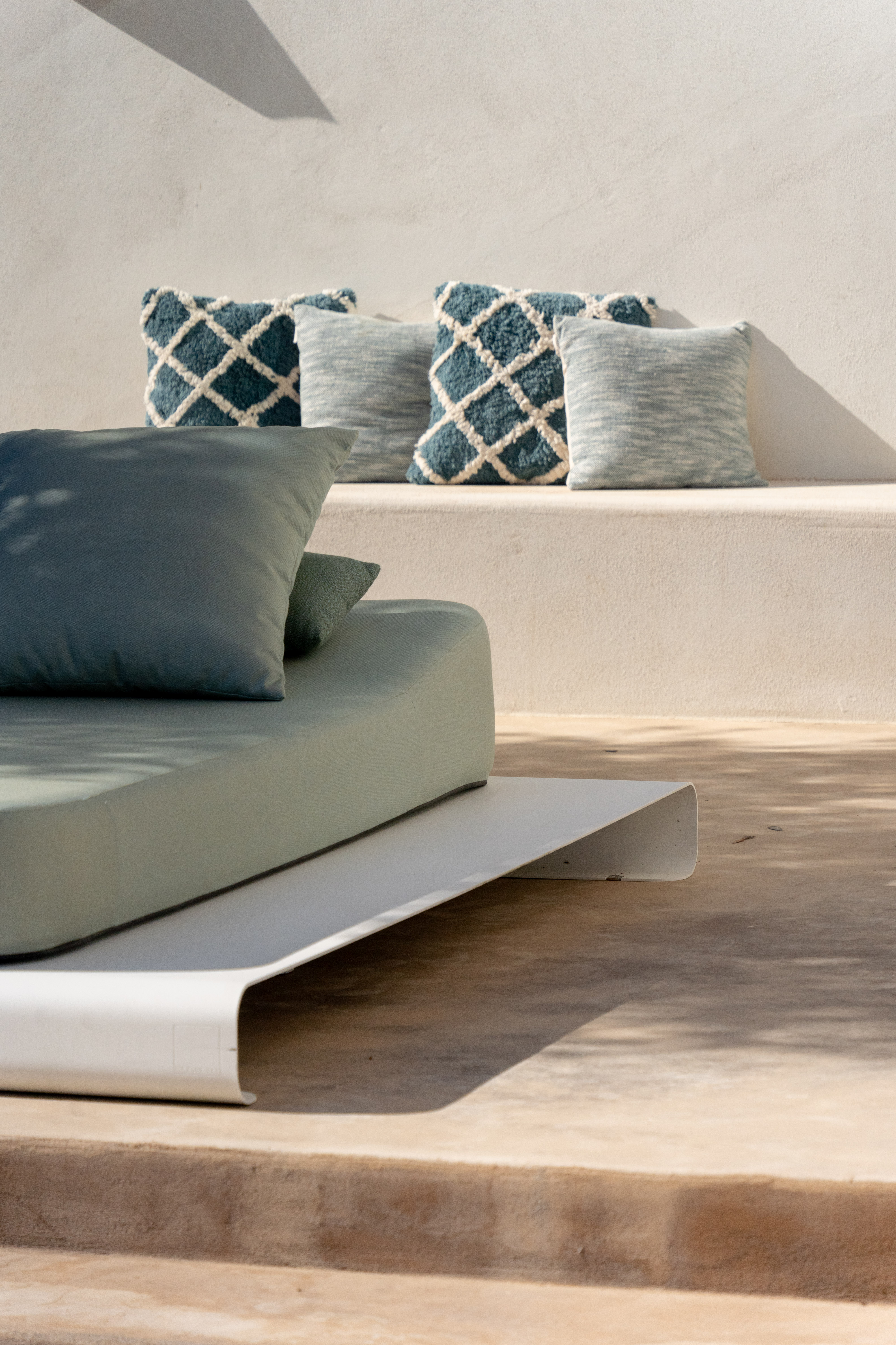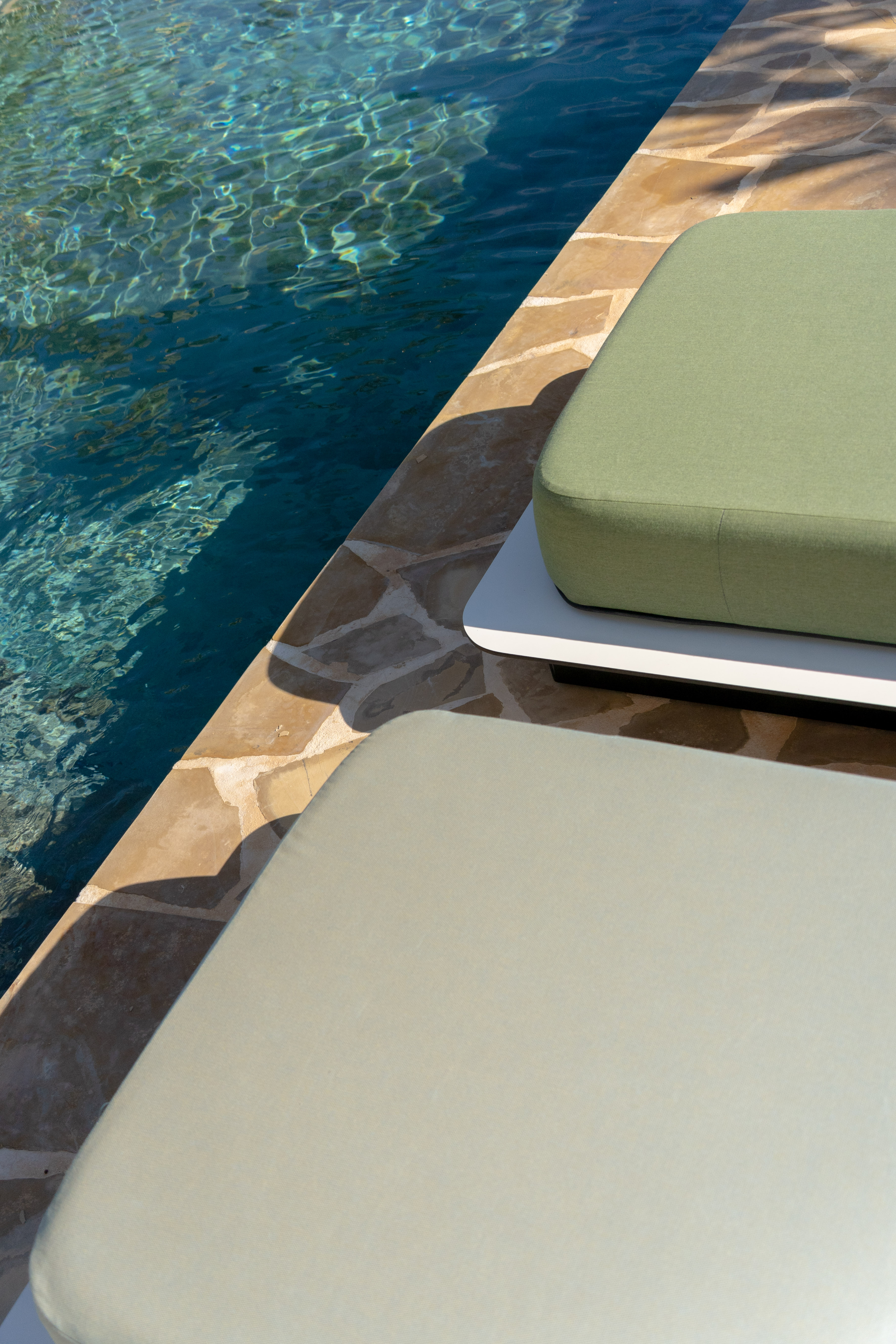 Floatiq offers a diverse range of four products: non-inflatable, water-resistant floating loungers, a daybed to transform your lounger into outdoor furniture, and square and rectangular cushions for mixing and matching.